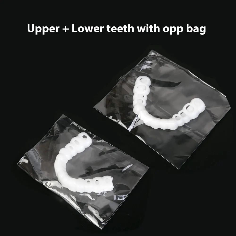 Perfect Fit Teeth Whitening Fake Tooth Cover Snap on Silicone Smile Veneers Teeth Upper Beauty Tool Cosmetic Teeth 2Pcs