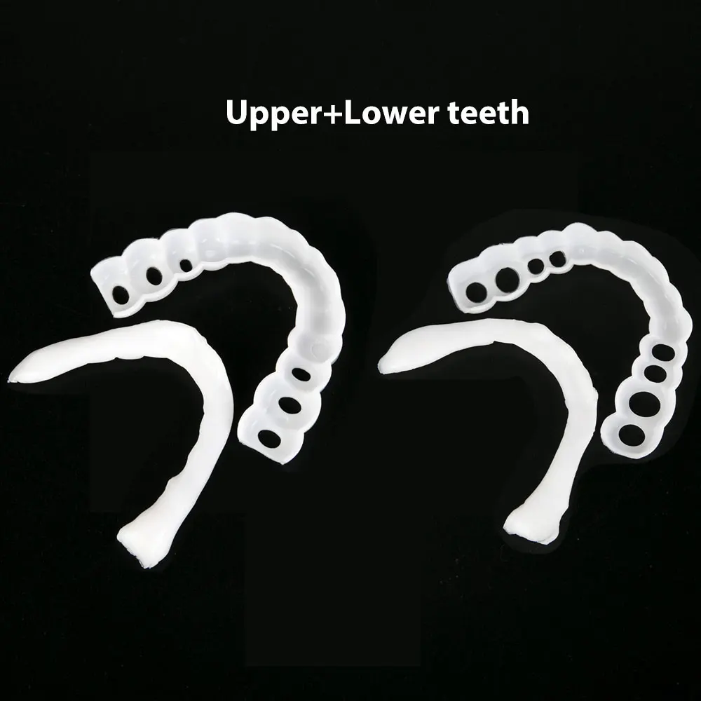 2Pcs Perfect Fit Teeth Whitening Fake Tooth Cover Snap On Silicone Smile Veneers Teeth Upper Beauty Tool Cosmetic TeethDescription: